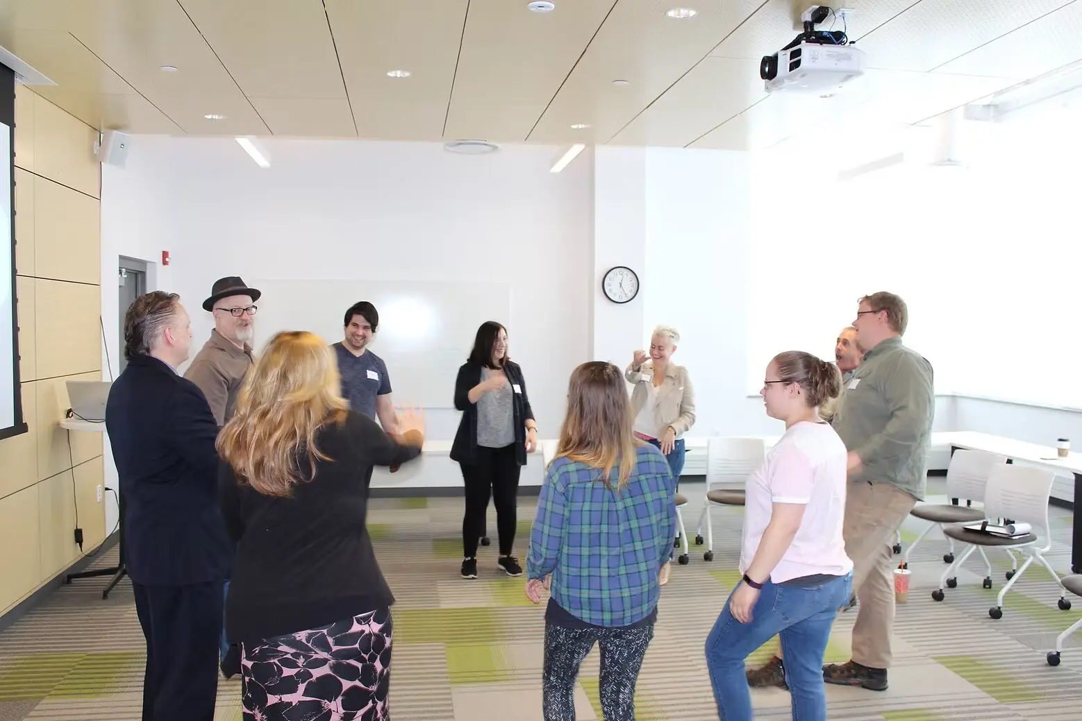 A private open space (empty meeting room, flexible activity space) large enough to accommodate the number of participants. We will be on our feet most of the time. Best if it's a little cool as opposed to too warm.